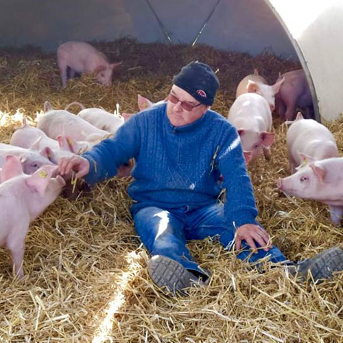 Au lycée hôtelier, Kévin rencontre Régine, sa compagne. Issue d’une famille d’éleveurs installée depuis deux générations sur la ferme Adam à Witternheim, c’est elle qui introduit Kévin au monde paysan. C’est le déclic : pris de passion pour la terre, il se forme à l’agriculture biologique et devient à son tour paysan-éleveur. En 2011, il reprend la ferme familiale en polyculture-élevage et développe un atelier de volailles, tout en perfectionnant la production de lait et l’élevage de veaux et de cochons. Il initie alors la conversion de la ferme en agriculture biologique qui aboutira en 2015 avec l’obtention du label AB : c’est ainsi que la Ferme de la Coccinelle voit le jour.